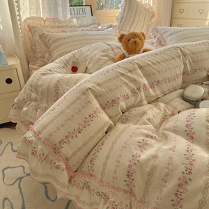 法式公主风花边纯水洗棉床上四件套学生被罩宿舍少女心床裙床笠款