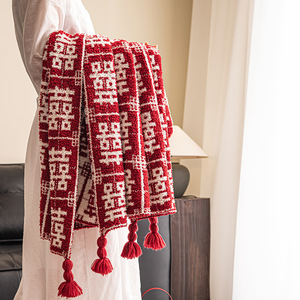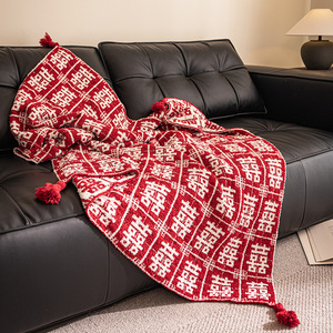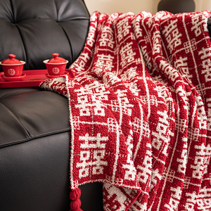 奕楚ins风百喜毯新年午睡新婚结婚喜字订婚毛毯礼物新娘新人闺蜜