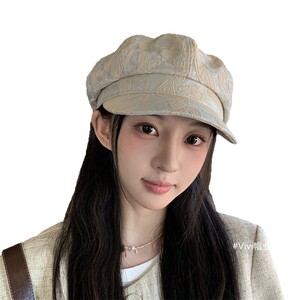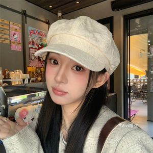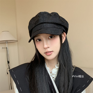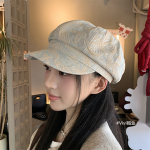 春秋季新款国风印花刺绣八角帽子女时尚优雅透气显脸小百搭画家帽