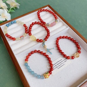 天然南赤瑪瑙貔貅翡翠クリスタル新中国風ブレスレットビーズライブストリーミングソースオリジナルレディース新スタイル