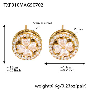 TXF310-ゴールド 5A ジルコン回転フラワー イヤリング