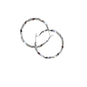 超闪碎银子圆圈耳环女轻奢小众高级感气质耳钉大耳圈耳饰素圈耳扣