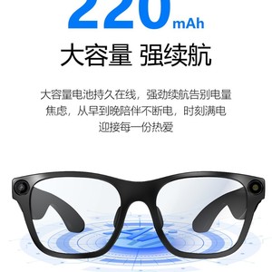カメラ付きスマートグラス、動画撮影、写真撮影、翻訳、音楽再生、Bluetoothオーディオ、音声録音、AIグラス