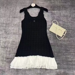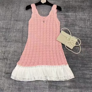 女性用フレンチウェーブエッジVネックスタッズキャミソールドレス、エレガントな中空多用途スリムニットドレス