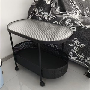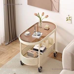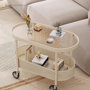 クリームスタイルのモダンな小さなリビングルームモバイルコーヒーテーブルソファサイドガラスホイール付きシンプルな収納トロリー