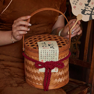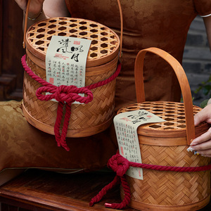中秋礼盒2025编织手提竹篮子国风广式流心蛋黄酥包装礼品盒送礼盒