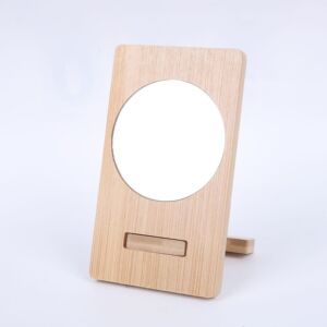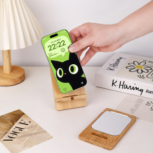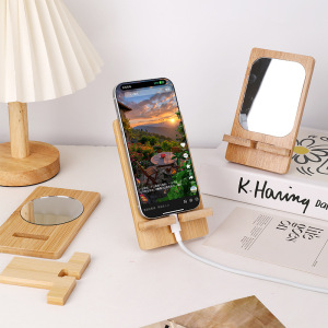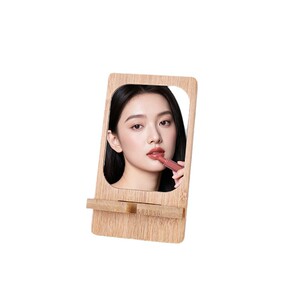 跨境木质手机支架便携方形宿舍学生桌面高清镜子厂家批发迷你圆镜