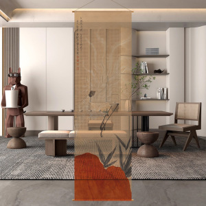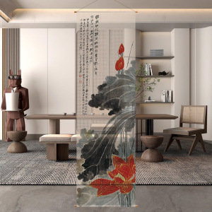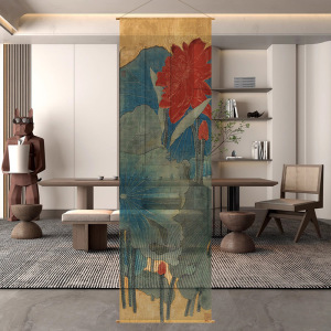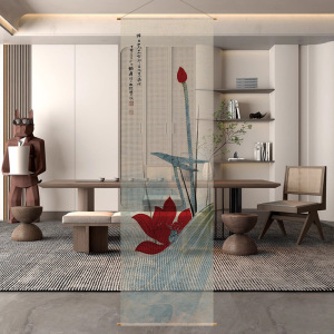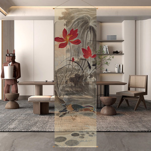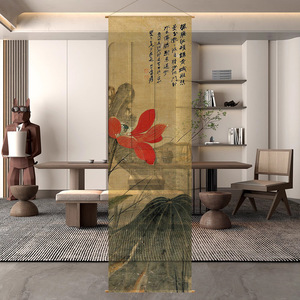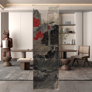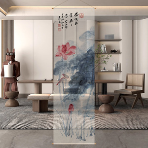 纱帘半透明荷花风水透景屏风纱中式卷帘隔断帘挂帘水墨窗帘透光纱