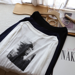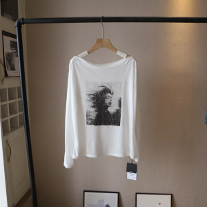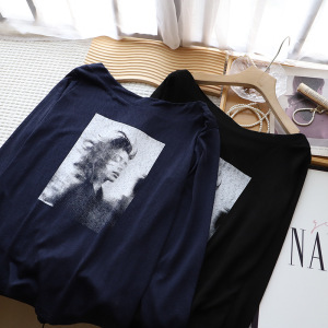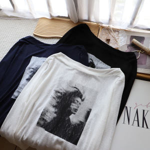 [Bizheng] 2025 夏新韓国版薄いワンショルダーキャラクタープリントルーズで多用途な女性用長袖 T シャツ 4562