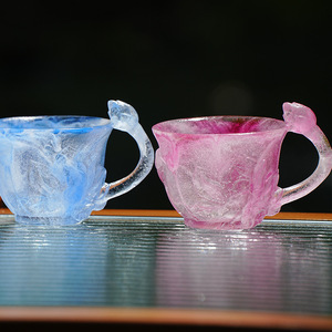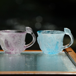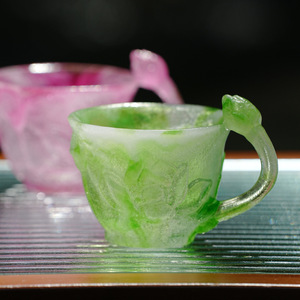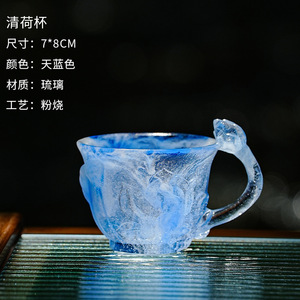 古法琉璃失蜡法琉璃荷叶荷花骨朵浮雕清荷杯主人杯品茗杯不可开水