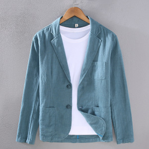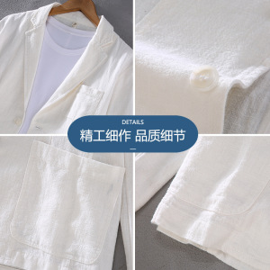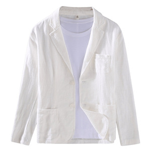 3302 和風フラットラペルカジュアルラミースーツメンズ多用途若者ルーズビジネスコットンとリネンのスーツジャケット