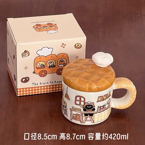 パン子猫漫画誕生日セラミックマグかわいいコーヒーカップ蓋付き誕生日プレゼントお土産ドリンクカップ