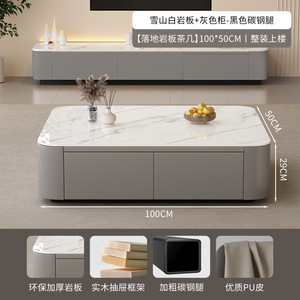 【落地岩板茶几】雪山白岩板+灰色柜-黑色碳钢腿100*50丨整装上楼