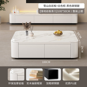 【落地岩板茶几】雪山白岩板+白色柜-黑色碳钢腿100*50丨整装上楼