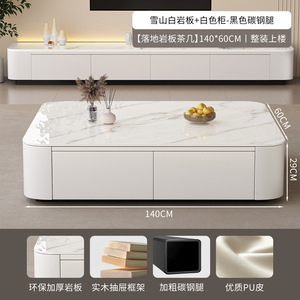 【落地岩板茶几】雪山白岩板+白色柜-黑色碳钢腿140*60丨整装上楼