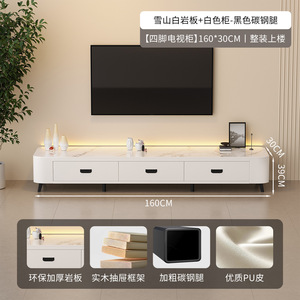 【四脚电视柜】雪山白岩板+白色柜-黑色碳钢腿160*30丨整装上楼