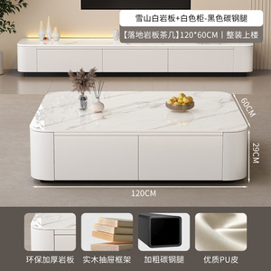 【落地岩板茶几】雪山白岩板+白色柜-黑色碳钢腿130*60丨整装上楼