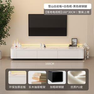 【落地电视柜】雪山白岩板+白色柜-黑色碳钢腿160*30丨整装上楼