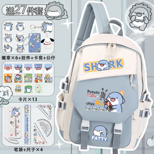 肥肥鲨小学生小鲨鱼书包男生3-4-6年级大容量女生护脊减负双肩包