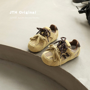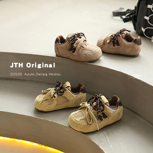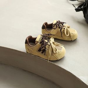 2025年秋の新スタイルのレトロなカラーブロックのダブルレースアップスポーツシューズ、男の子と女の子用、中型および大型の子供用カジュアルで多用途な道徳訓練靴とランニングシューズ