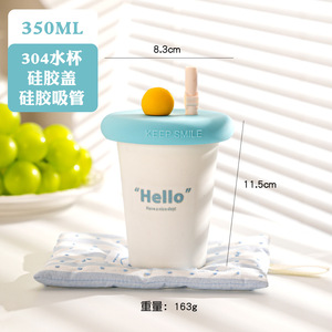 蓝色350ML【带硅胶盖+硅胶吸管】