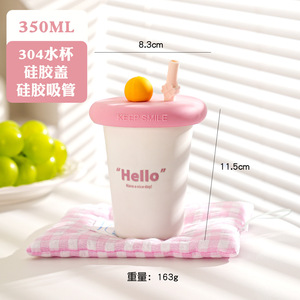 厂家直供 高颜值创意304不锈钢咖啡杯上班族便携带吸管水杯 礼品