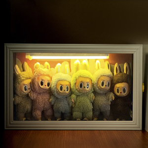 中空フォトフレーム空フレームハンドメイドブラインドボックスバブルマトラブ収納ボックスダストカバーラブブ木製ディスプレイ