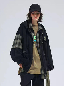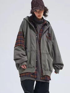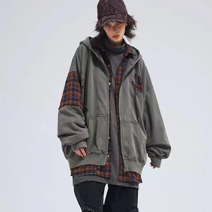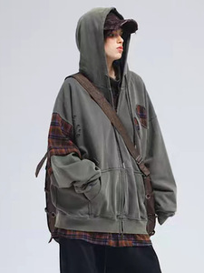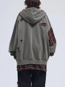 跨境废土风破洞拼接假两件开衫卫衣女|oversize休闲随性潮流百搭