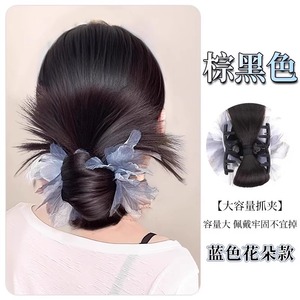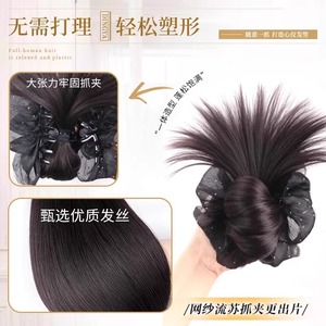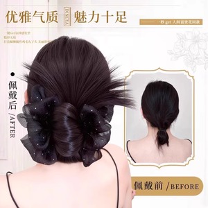 假发女网纱鸡毛碎钻蝴蝶结丸子头慵懒感盘发蓬松满天星后脑勺发包