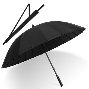 24本骨ロングハンドル傘 メンズ 大型自動暴風雨専用傘 強化・強力・耐風ストレートロッド ロゴプリント
