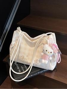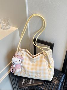 韓国風チェック柄バッグレディース大容量2025新作カジュアル通勤ショルダーバッグ通勤やお出かけ用脇トートバッグ