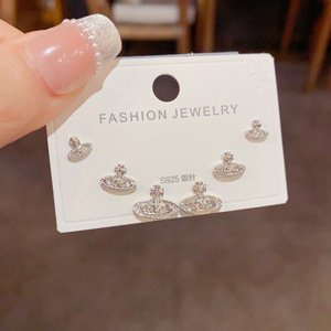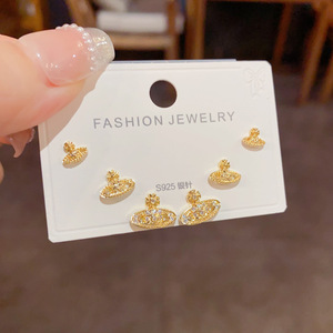 夏らしい爽やかでダイヤモンドがちりばめられた土星の3点イヤリングセット、絶妙でファッショナブル、コンパクトで多用途、超キラキライヤリングセット