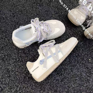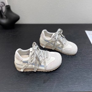 拼色复古真皮德训鞋女2025年新款丑萌圆头系带轻便透气休闲运动鞋