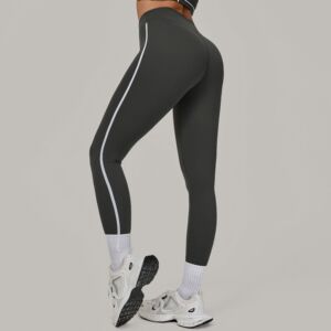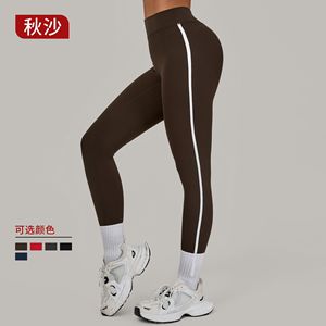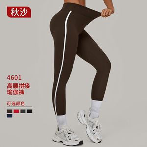 コントラストカラーステッチランニング速乾性フィットネスパンツ通気性アウタータイトスポーツパンツハイウエストヒップリフティングヨガパンツ女性用 4601