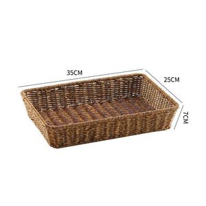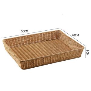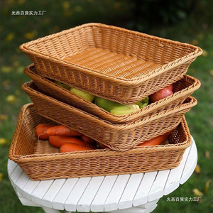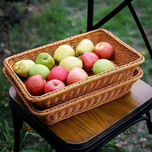 模造籐フルーツバスケットプラスチック手編みスーパーマーケットスナック収納バスケット果物と野菜ボックスパンバスケット長方形