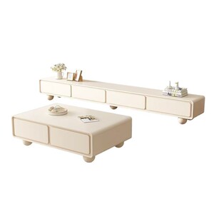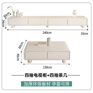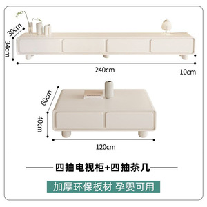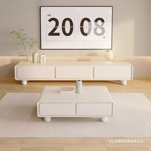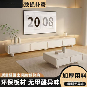 奶油风客厅茶几电视柜现代简约高级感小户型白色圆角电视柜茶几