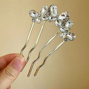 新款水钻蝴蝶发簪女后脑勺盘发神器高级感四齿插梳发钗丸子头簪子