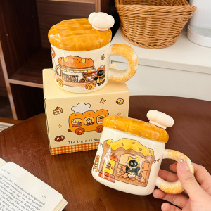 创意黑猫面包师傅陶瓷马克杯可爱家用早餐杯儿童牛奶燕麦杯伴手礼