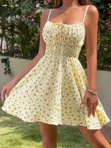 2025 ヨーロッパとアメリカのアマゾン貿易花柄バックレスサスペンダードレスサンドレス