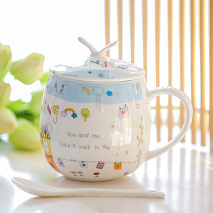 马克杯带盖勺咖啡杯陶瓷大容量牛奶杯创意简约情侣杯子骨瓷水杯