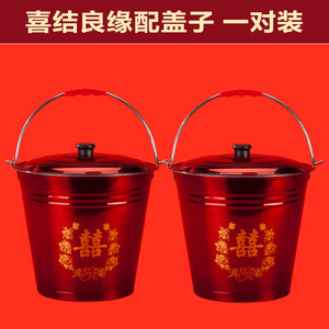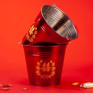 結婚式用の赤いバケツ、花嫁の嫁入り用の赤いバケツ、結婚式のバケツ、ステンレス製のバケツ、結婚式用の子孫バケツ