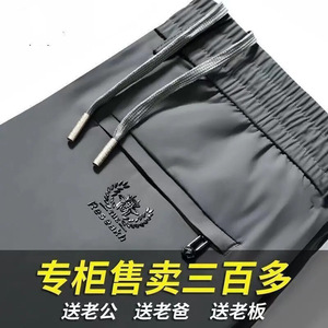 中年男士休闲裤高弹力高档真丝中青年新款夏季薄款冰丝速干九分裤