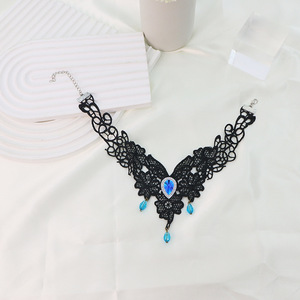 新しいゴシックレトロレースネックレス宝石ペンダント女性のネックレス卸売クロスボーダー鎖骨チェーンドレスネックレス