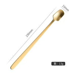 ステンレス製の四角いヘッドのスプーン、長い柄のコーヒーかき混ぜスプーン、クリエイティブなバーアイススプーン、マグカップ用ギフトスプーン、レーザー刻印ロゴ対応