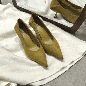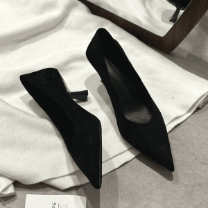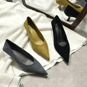 单鞋女新款春秋季百搭通勤中跟浅口小跟鞋法式尖头细跟5cm低跟鞋
