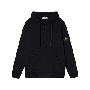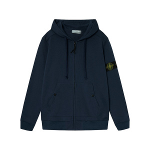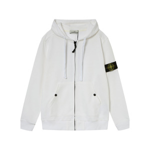 跨境STON石头衫秋冬男女连帽卫衣纯色岛袖标徽章款拉链卫衣外套潮