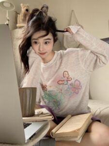 オリジナル生地刺繍+プリントカラー手描き落書き日焼け止めブラウスレディースメッシュルーズ長袖Tシャツトップ