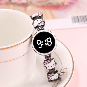 现货新款LED触屏电子手表高颜值学生款时尚可爱KT猫钢带手链表