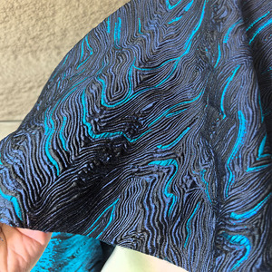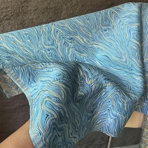 蓝色海洋立体流水肌理提花闪光泽布料油画艺术汉服服装设计师面料