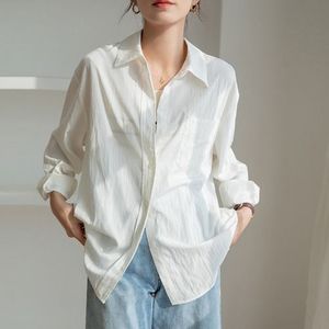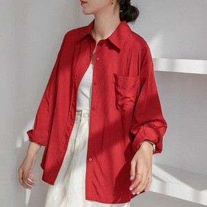 B146#法式洋气薄款长袖红色衬衫女设计感小众秋季宽松百搭衬衣女